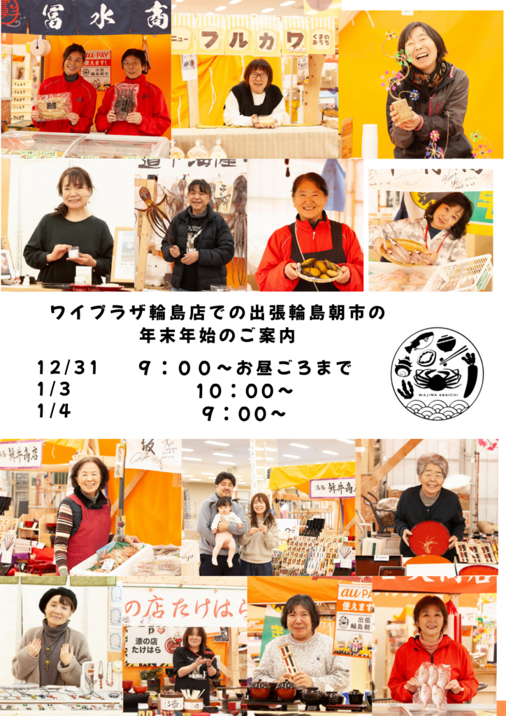 ワイプラザ輪島店での出張輪島朝市の年末年始の営業時間のお知らせ